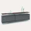 Tampo mesa com 25 mm de espessura, o armário credenza inclui um gaveteiro