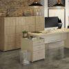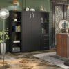 Praticidade e organização são detalhes fundamentais em qualquer escritório, por esse motivo, escolhemos peças que trazem essas funcionalidades, além de espaços para decorar e harmonizar o ambiente. A escolha da cor preta para os armários diretor, estante 4 gavetas e a estante torre reforçam o conceito de um ambiente sóbrio, que inspira liderança e poder.